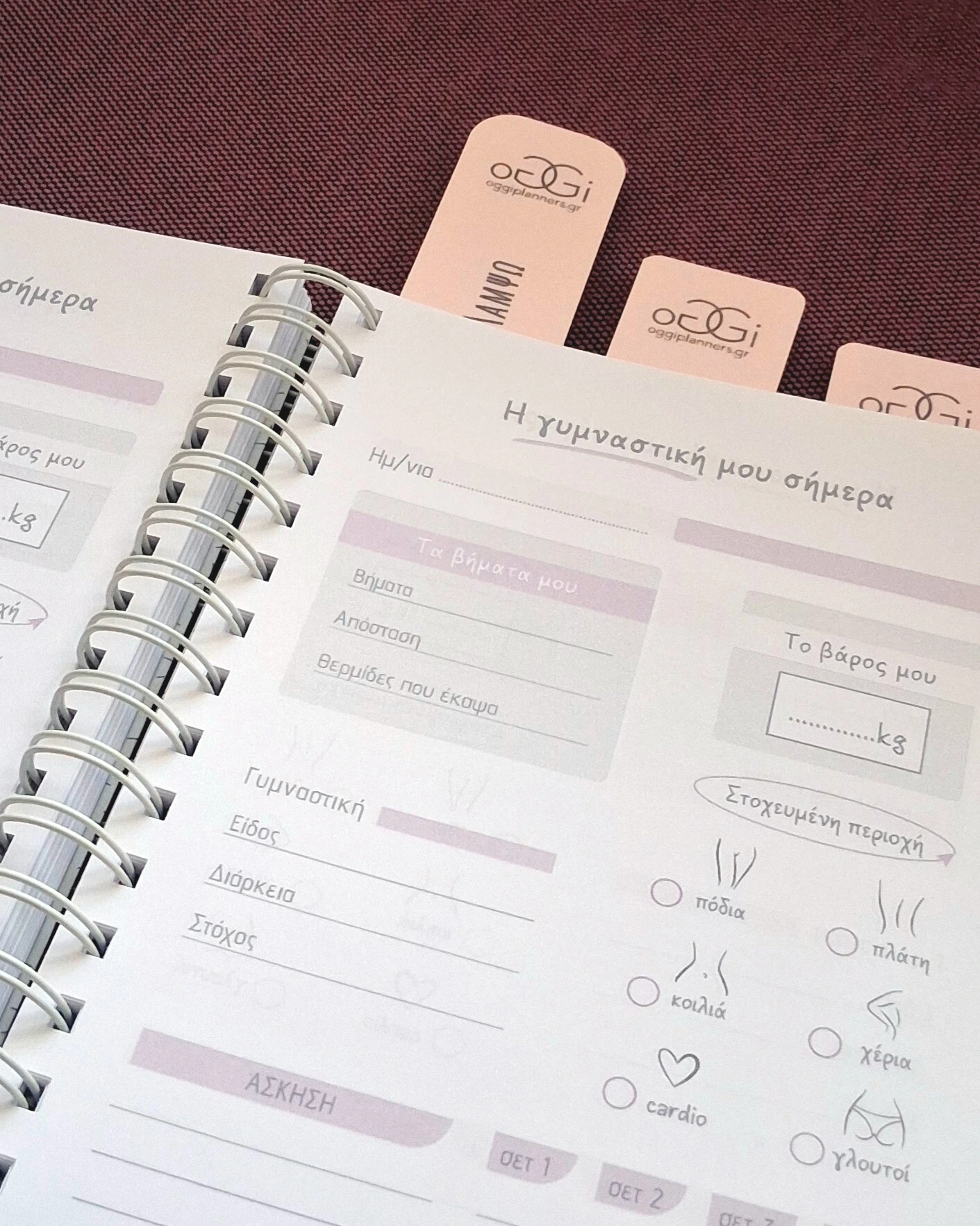 - Πρόγραμμα γυμναστικής και χώρος για καθημερινή καταγραφή γευμάτων