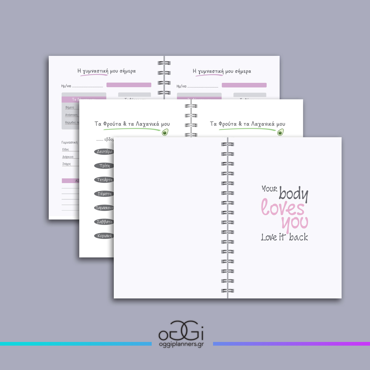 Περιέχει 90ημέρες / 3 μήνες συνεχούς καταγραφής συνηθειών για να αγαπήσεις το σώμα σου και να πετύχεις τους στόχους σου.