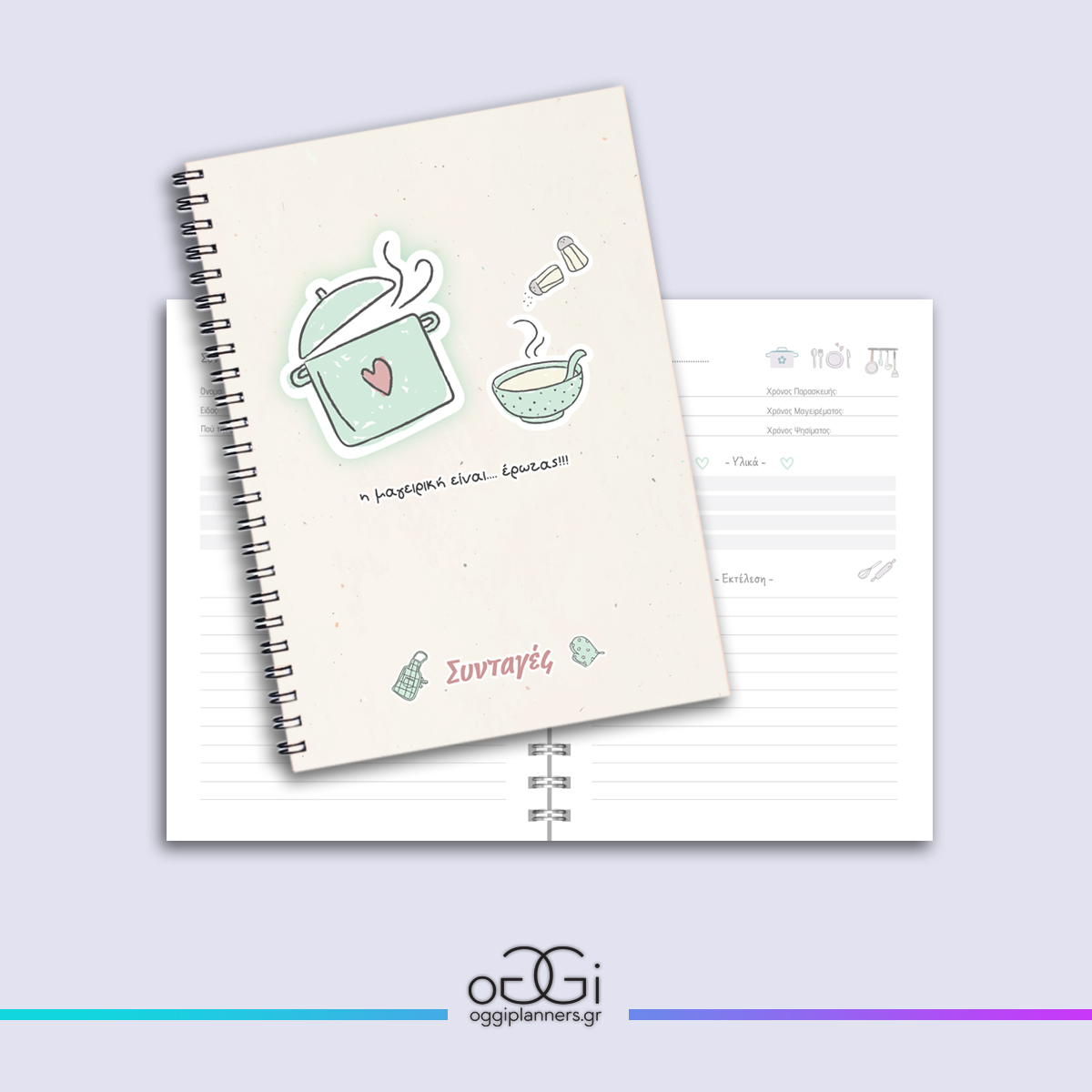Κάθε σελίδα περιέχει χώρο για να σημειώσεις το όνομα της συνταγής, το χρόνο παρασκευής, τα υλικά που πρέπει να χρησιμοποιήσεις και να καταγράψεις βήμα βήμα τα στάδια εκτέλεσης.
